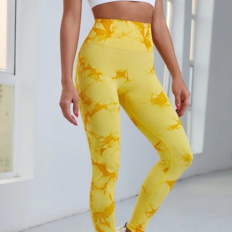 Colanți sport damă fără cusături push-up talie înaltă Galben – FITINT 113