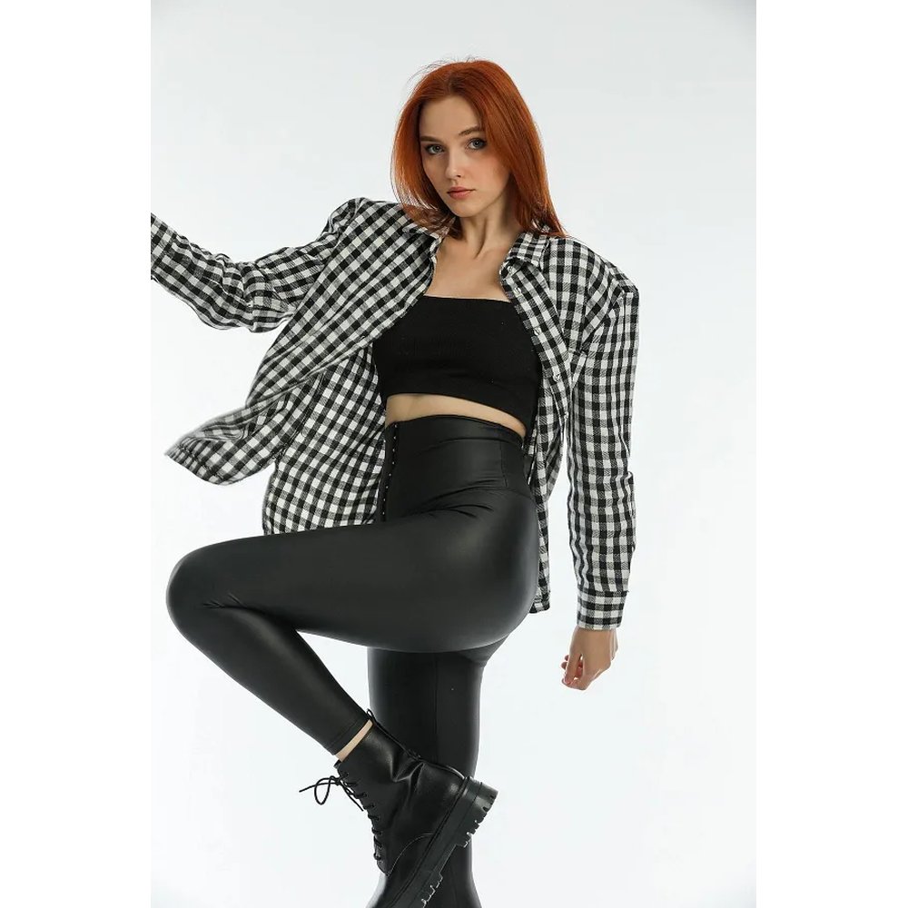 Colanti vatuiti piele ecologica FITINT cu corset Unique Negru