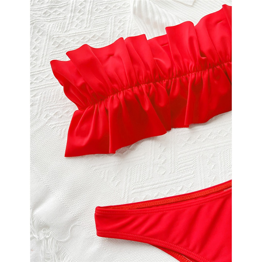 • Costum de baie rosu din 2 piese cu sutien bandeau