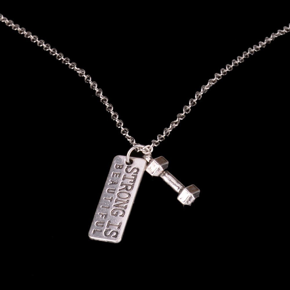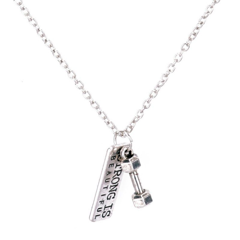• Lantisor pentru pasionatii de fitness cu pandantiv – Gantera si Strong is Beautiful